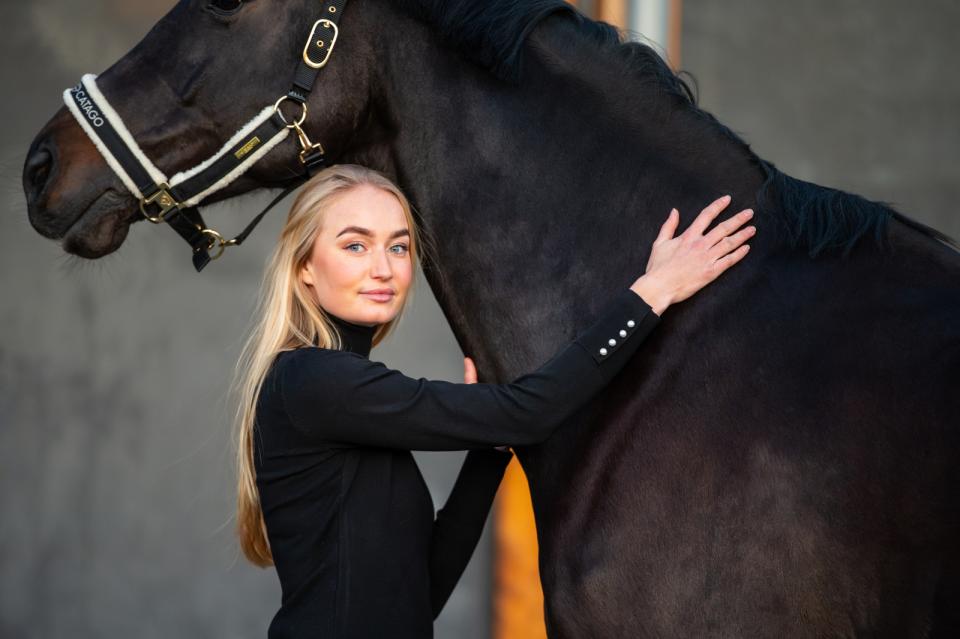 Fijngebreide, nauwsluitende gebreide trui met rolkraag .Geribbeld detail bij de mouwen/manchetten. Lange mouwen met elegante witte parellook knoopjes aan de manchetten. Prachtige trui die zowel casual als met rijden te dragen is. kleed super mooi af!